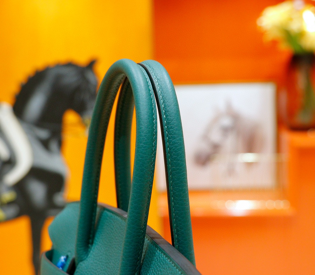 Birkin30cm祖母绿togo小牛皮全手缝银扣;