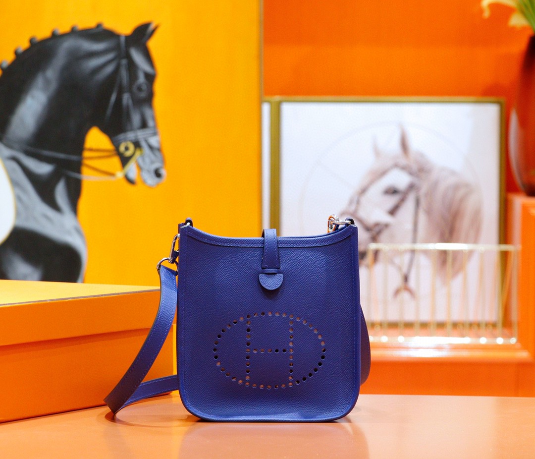 Hermès(爱马仕)Evelyne 伊芙琳 电光蓝 Epsom 全手缝 银扣 17cm