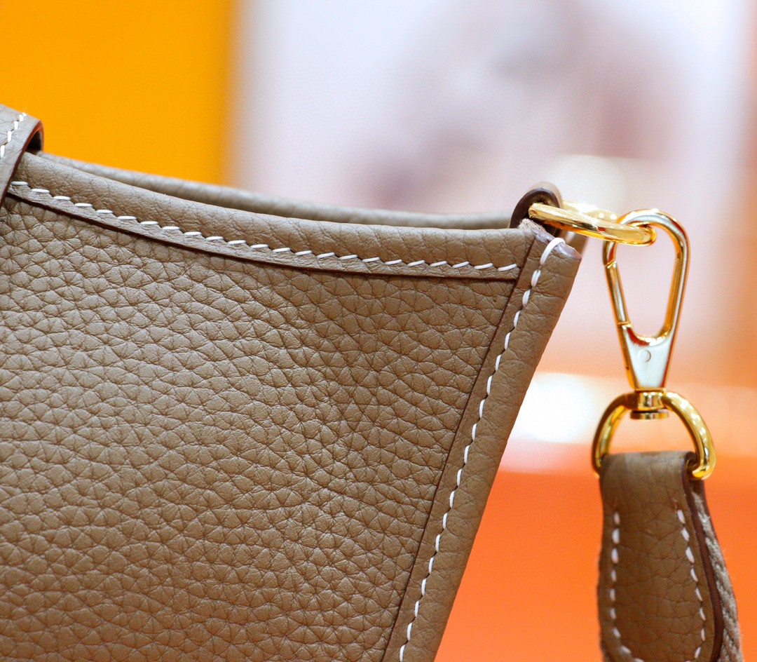 Hermès(爱马仕)Evelyne 伊芙琳 大象灰 Togo 全手缝 金扣 17cm 2021年5月23日 0 爱马仕包包官网 Evelyne 伊芙琳17cm大象灰Togo全手缝金扣 小可爱伊芙琳17cm,容量也超可以的哦 粉饼,手机,现金,卡都可以放 最合适女生啦