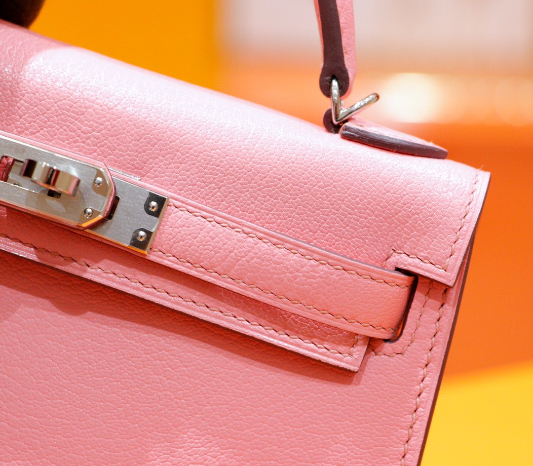 Hermès(爱马仕)Minikelly 迷你凯莉 奶昔粉 山羊皮 全手缝 银扣 2代 2021年5月24日 0 爱马仕包包官网 Mini Kelly Minikelly2代奶昔粉山羊皮全手缝银扣 粉粉嫩嫩的奶昔粉 超显年轻活力