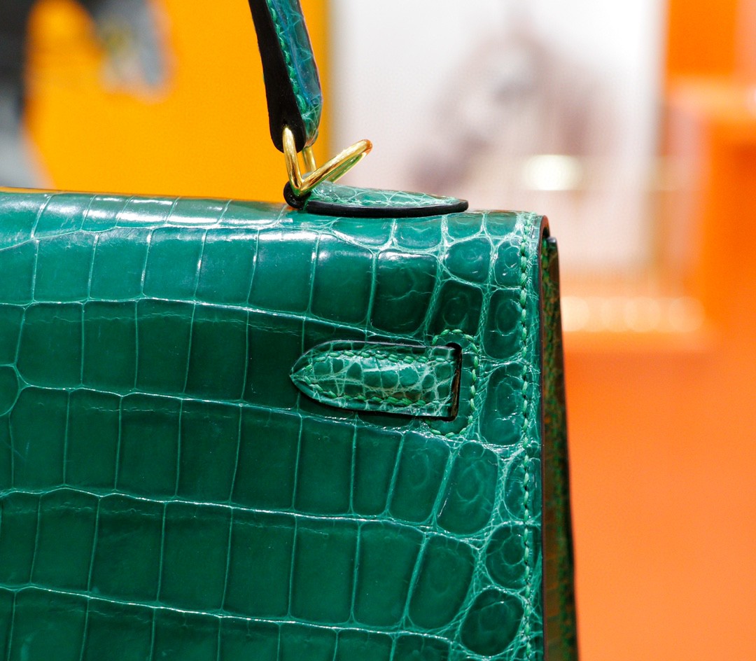 Hermès(爱马仕)Kelly 凯莉包 翡翠绿 亮面鳄鱼皮 金扣 25cm