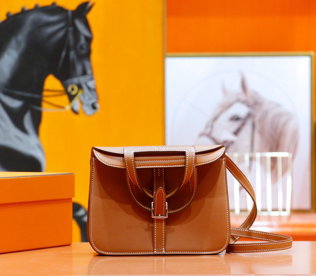 Hermès(爱马仕)Halzan 金棕色 Swift 全手缝 银扣 20cm 2021年6月25日 0 爱马仕包包官网 Halzan Halzan20cm金棕Swift全手缝银扣 日常舒适穿搭,单肩,斜挎,手拎,肩带还可以调节 款式低调大小合适,实用度满分
