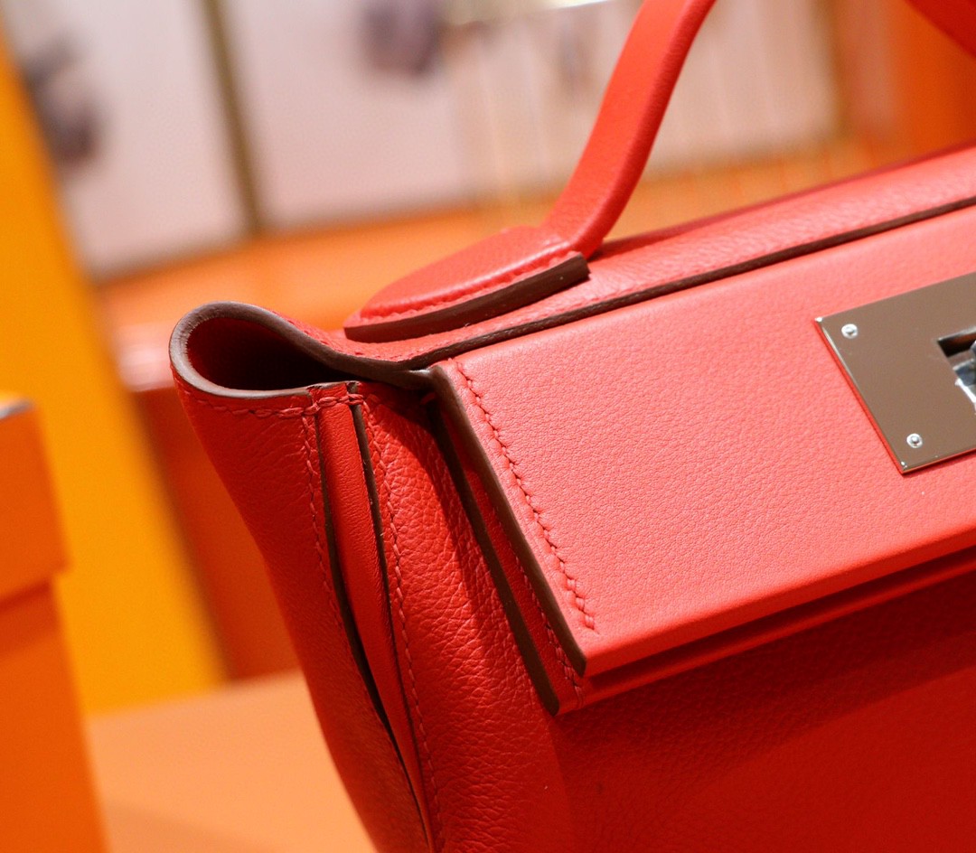 Hermès(爱马仕)Mini kelly 2424 蕃茄红 evercolor 银扣 21cm 2021年3月23日 0 爱马仕包包官网 Kelly 2424 Mini24/24 尺寸21cm番茄红银扣全手缝细节[机智][机智] 此款多用,知性优雅,怎么背都好看evercolor 跟swift 的结合 皮质柔软,容量超好的!