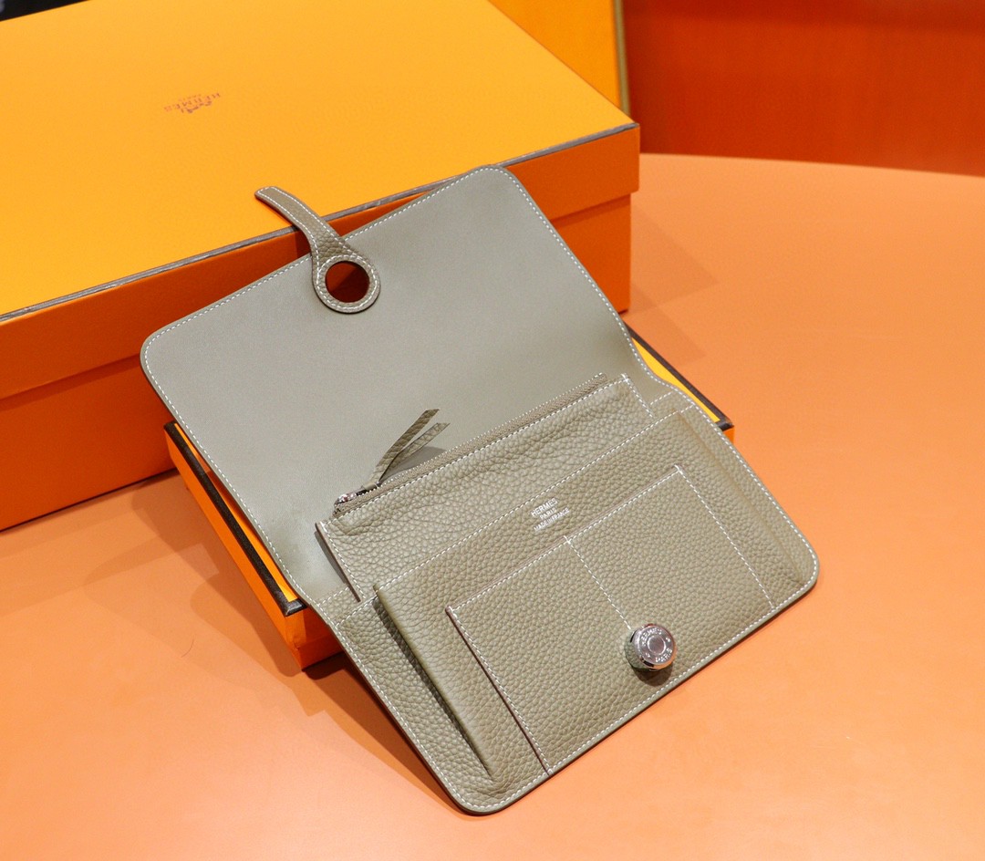 Hermès(爱马仕)护照本 大象灰 Togo 钱夹 银扣 2021年3月23日 0 爱马仕包包官网 钱包 钱夹 手包 护照本大象灰Togo钱夹银扣细节; 内可装多种,护照本,名片,卡片,零钱等等,皮质柔软,怎么揉虐都不会变形。